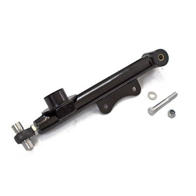Adjustable rear lower contro arms are designed to improved traction, quicker launches and less wheel hop.  Made from high tensile steel alloy pair with hard rubber bushings and spherical bearing joints.  Engineered to be repalcement control arms for easy installation.