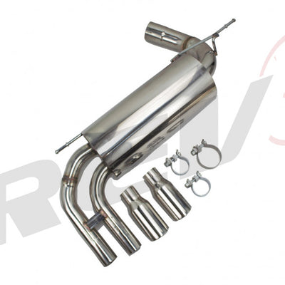 Rev9's stainless steel exhaust is a great performance upgrade over the original factory exhaust. Direct bolt-on replacement of the rear section after catalytic converter makes it an easy to install upgrade. Constructed of high-quality stainless steel pipes and canister and TIG welded joints with CNC'd flanges to ensure durability. Features an aggressive deep tone and larger diameter for less restricted exhaust and greater performance.