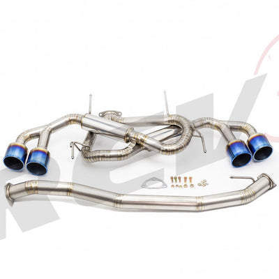 Rev9 is proud to present a fully titanium cat-back exhaust kit for "The Godzilla" Nissan GT-R R35. Titanium becoming the best material suitable for high end sports super cars due to its lightweight property. Rev9's Titanium Cat-Back Exhaust features machine welded connections and precision bends to improve free flow without restrictions for high power and high response.