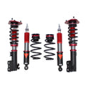 Godspeed Project's MAXX is our premier single-adjustable coilover suspension kit. These coilovers are designed to be a streetable race built coilover at an affordable price. It features a monotube damper that is made out of a carbon seamless steel 52mm tube with a 44mm internal piston providing maximum damper response. The cold-bent springs are made from high strength SAE9252 steel to optimize the balance between performance and comfort. Using high quality shock oil made in Italy, Godspeed Project can guarantee exceptional damper performance at any temperature on and off the track. The top of the shock is attached to the car using a high quality top hat that features a high performance bearing pillow ball mount (when applicable). The bottom shock brackets are made out of a T7075 forged aluminum or carbon steel brackets for lighter weight without sacrificing durability which also includes brake line brackets (when applicable). The MAXX offers 40 level of damper adjustability which can be set to your preference.