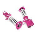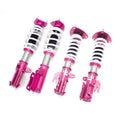 Godspeed Project's MonoSS is our one entity in our family of single-adjustable coilover suspension kits. These coilovers are designed to be a streetable race built coilover at an affordable price. It features a monotube damper that is made out of a carbon seamless steel 52mm tube with a performance internal piston providing maximum damper response. The cold-bent springs are made from high strength SAE9252 steel to optimize the balance between performance and comfort. Using race quality shock oil, Godspeed Project can guarantee exceptional damper performance at any temperature on and off the track. The top of the shock is attached to the car using a high quality top hat that features a high performance Japanese KOYO 6204Z bearing pillow ball mount (when applicable). The bottom shock brackets are made out of a T7075 forged aluminum or carbon steel brackets for lighter weight without sacrificing durability which also includes brake line brackets (when applicable). The MonoSS offers 16 level of damper adjust ability which can be set to your preference.